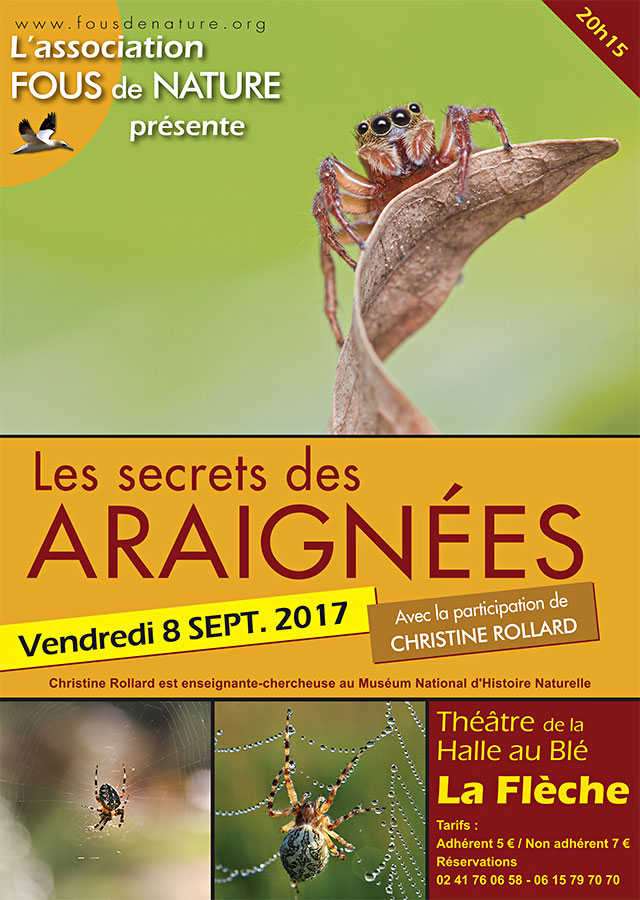 La vie des araignées ne se résume pas à la prédation. Lors de cette soirée, nous aborderons différents sujets : l'anatomie, avec quelques particularités comme le nombre de paires de pattes et d'yeux, les qualités du fil de soie, les moeurs plus ou moins amoureuses des araignées, leur rôle dans la nature...