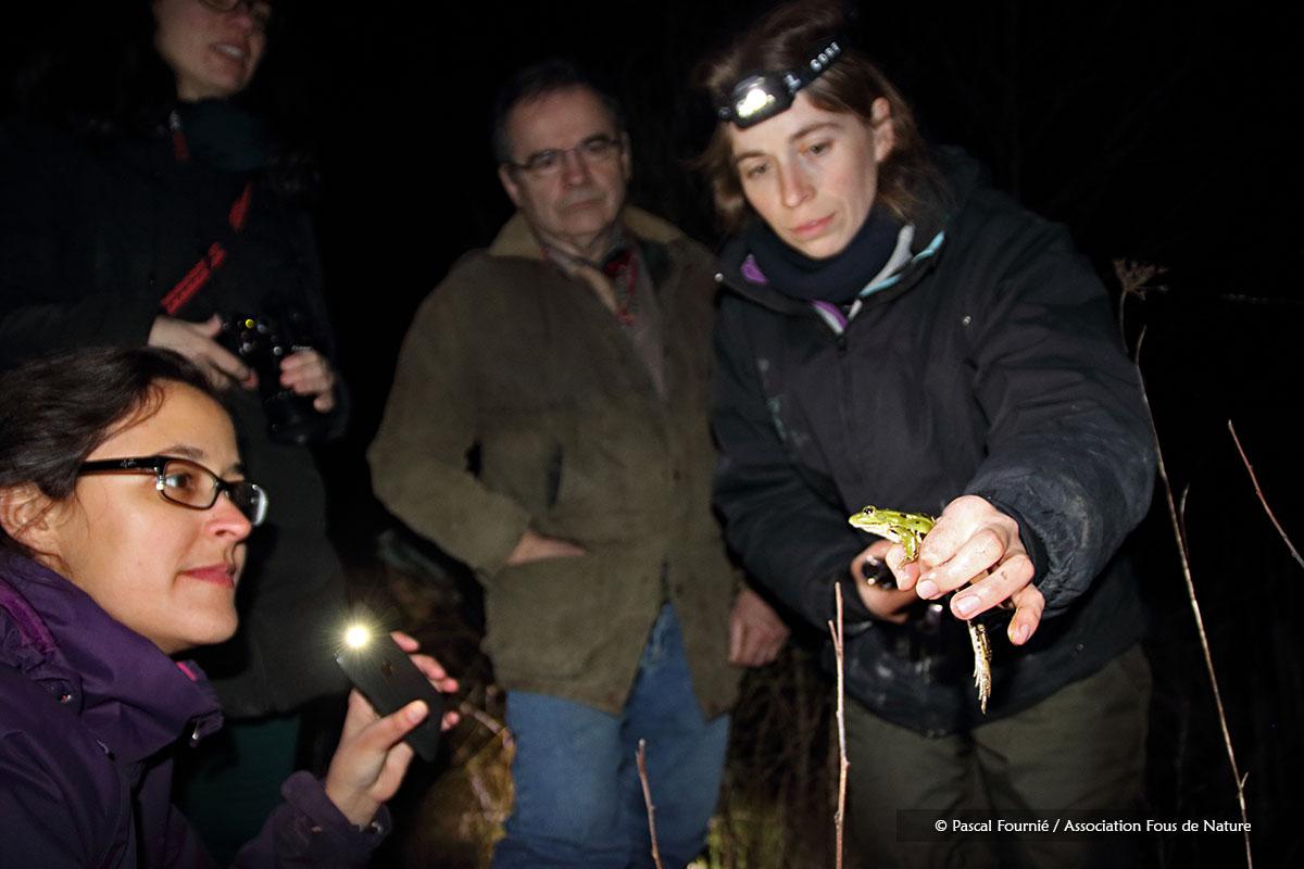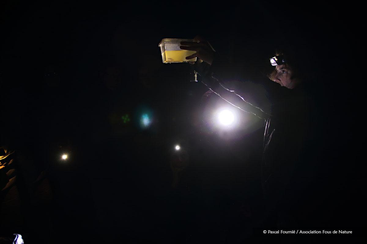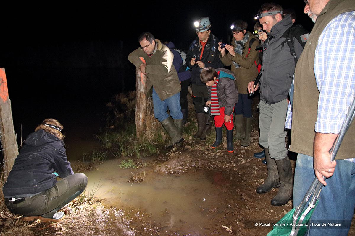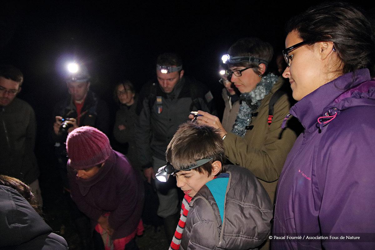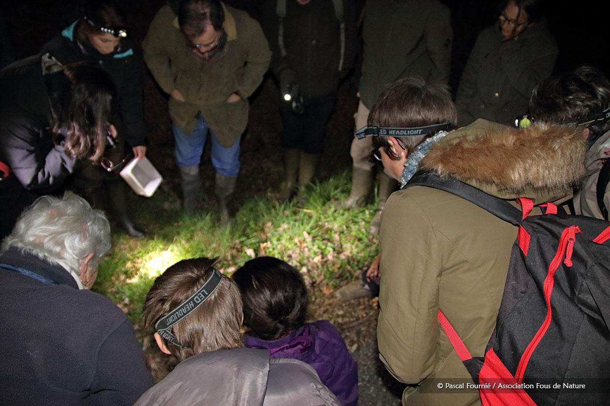 Le rendez-vous était donné sur le parking du CPIE à 20h00 à La Flèche. Morgane Sineau, chargée de missions au CPIE et fidèle intervenante pour l'association Fous de Nature, accueillait une petite vingtaine de participants munis de bottes pour la plupart. Premier principe de précaution, leur désinfection. Après un briefing rapide de Pascal Fournié, président de Fous de Nature, le groupe partait en voitures sur un site à proximité de La Flèche.
