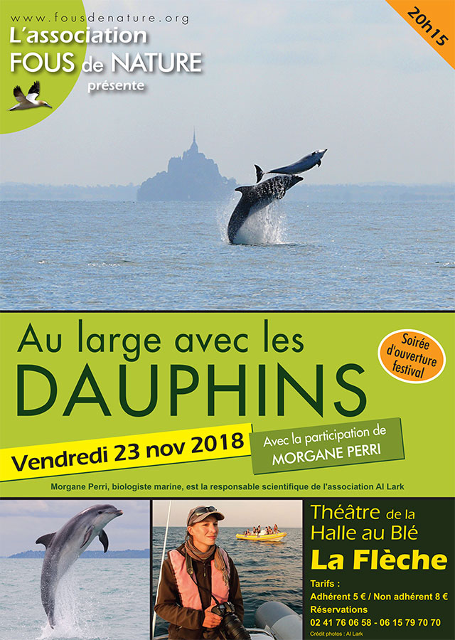 Au travers de photos, de séquences vidéo et autres documents, Morgane Perri, biologiste marine et responsable scientifique de l'association Al Lark, nous présentera les caractéristiques de cette espèce (anatomie, adaptation, écholocation...), sa vie et les études menées dans la Manche.