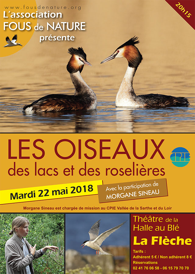 Après les castors en novembre dernier, Morgane Sineau revient pour animer cette soirée en présentant cette fois les oiseaux que l'on peut observer aux lacs de la Monnerie et au Marais de Cré-sur-Loir / La Flèche. Elle nous expliquera les aménagements effectués sur les deux sites, des modifications qui ont permis l'implantation de certaines espèces. Elle abordera aussi le phénomène des migrations, de nombreux oiseaux passant l'hiver dans des régions plus chaudes.