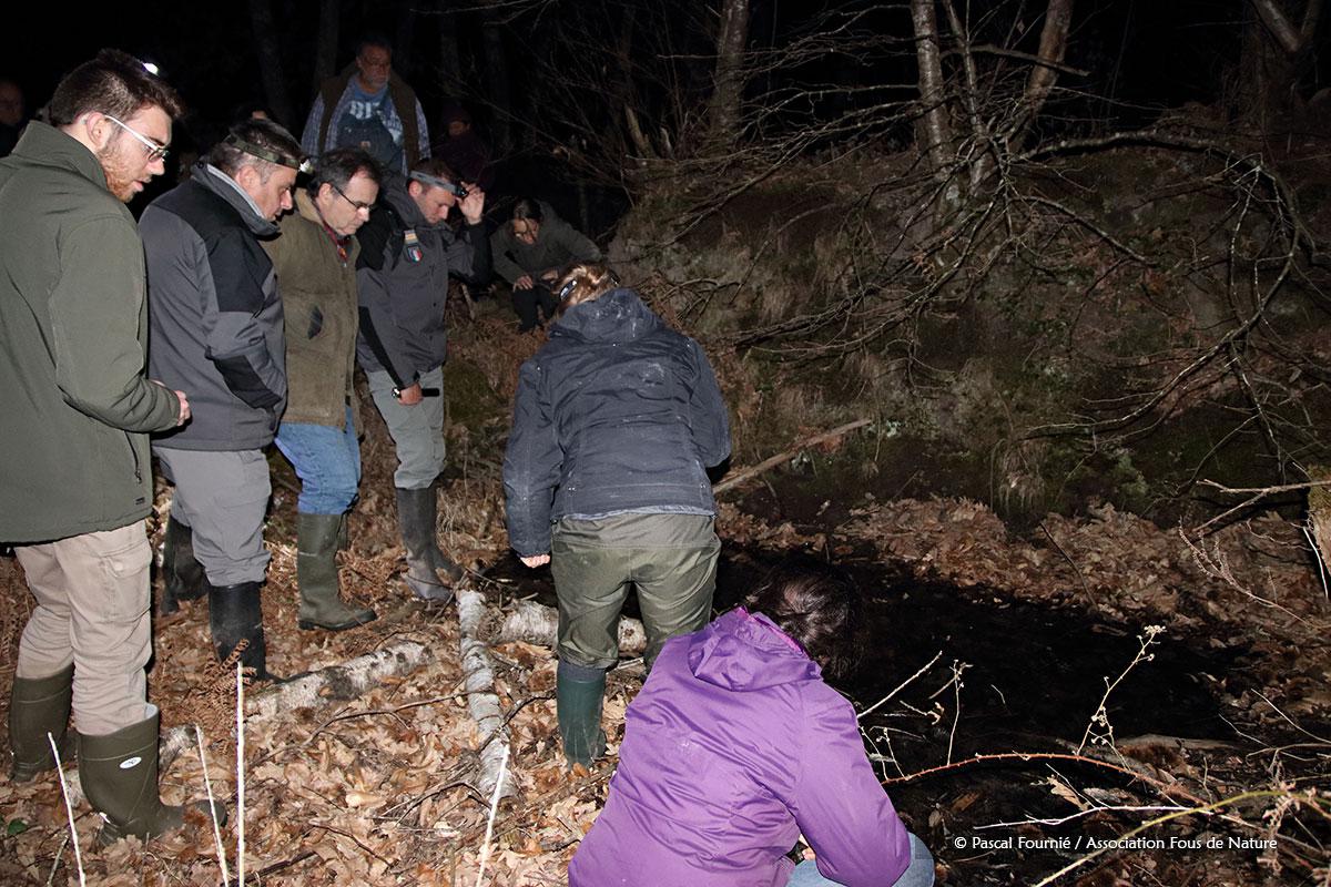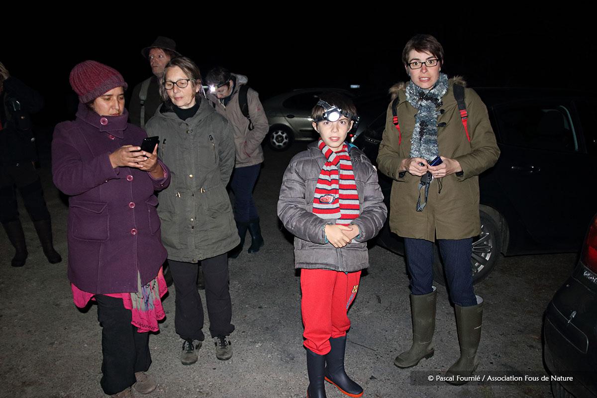 Le rendez-vous était donné sur le parking du CPIE à 20h00 à La Flèche. Morgane Sineau, chargée de missions au CPIE et fidèle intervenante pour l'association Fous de Nature, accueillait une petite vingtaine de participants munis de bottes pour la plupart. Premier principe de précaution, leur désinfection. Après un briefing rapide de Pascal Fournié, président de Fous de Nature, le groupe partait en voitures sur un site à proximité de La Flèche.