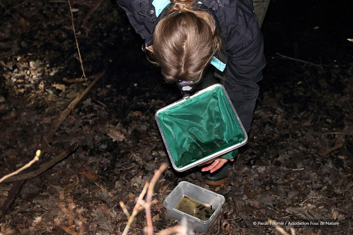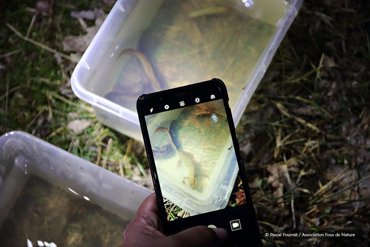 Il faut rappeler que la capture, la manipulation et le déplacement des amphibiens sont totalement interdits par la loi. Morgane Sineau possède une autorisation spécifique.